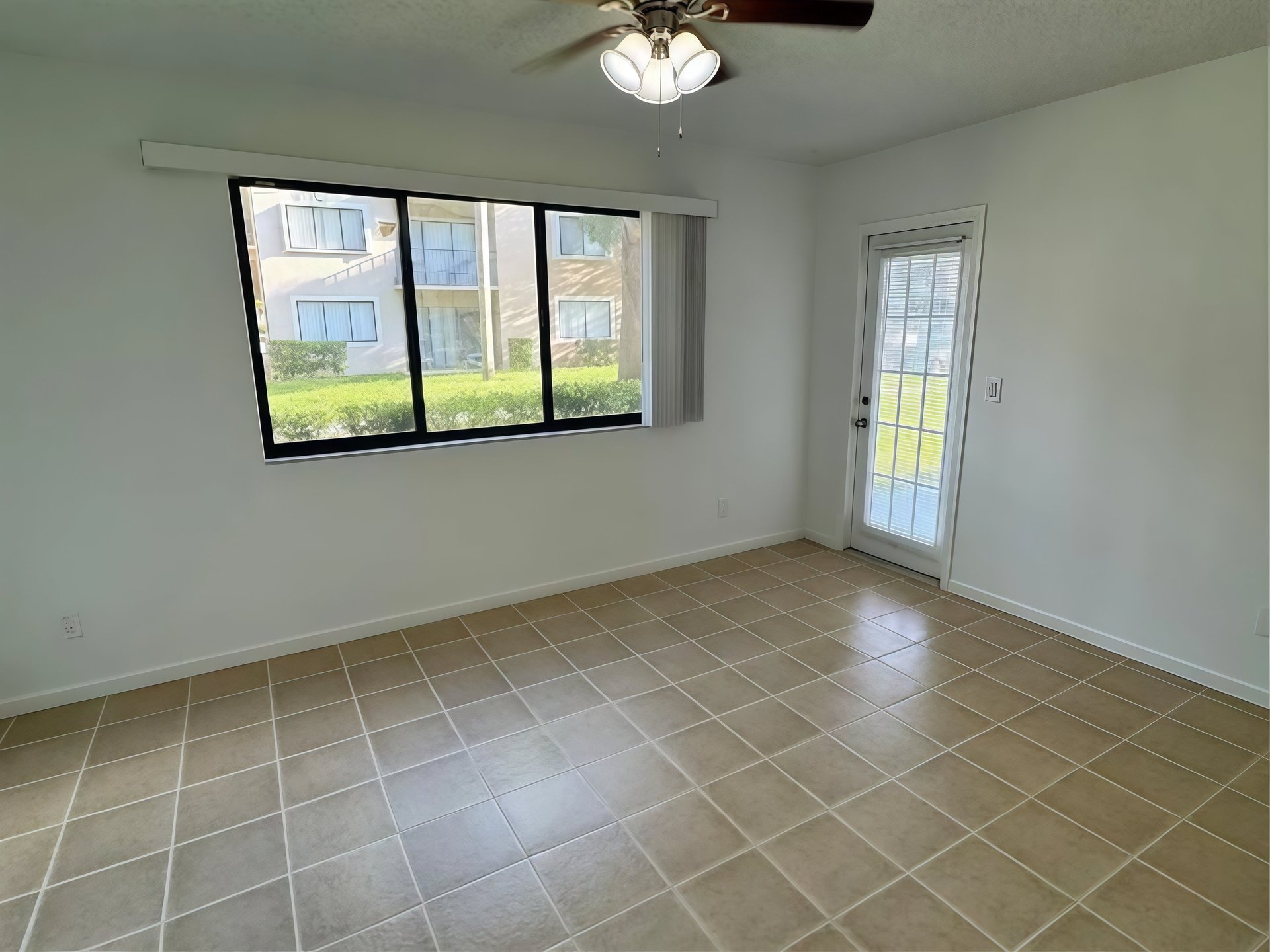 Condominio de 2 dormitorios y 2 baños con porche con mosquitero y vistas al agua. Cocina moderna con gabinetes de madera y electrodomésticos de acero inoxidable, pisos de baldosas en toda la propiedad. Comunidad segura y tranquila, cerca de tiendas, restaurantes y autopistas. Requisitos: verificación de antecedentes, primer y último mes más depósito, buen crédito y sin mascotas. Esta hermosa casa cuenta con 931 (sq ft) de superficie cubierta.